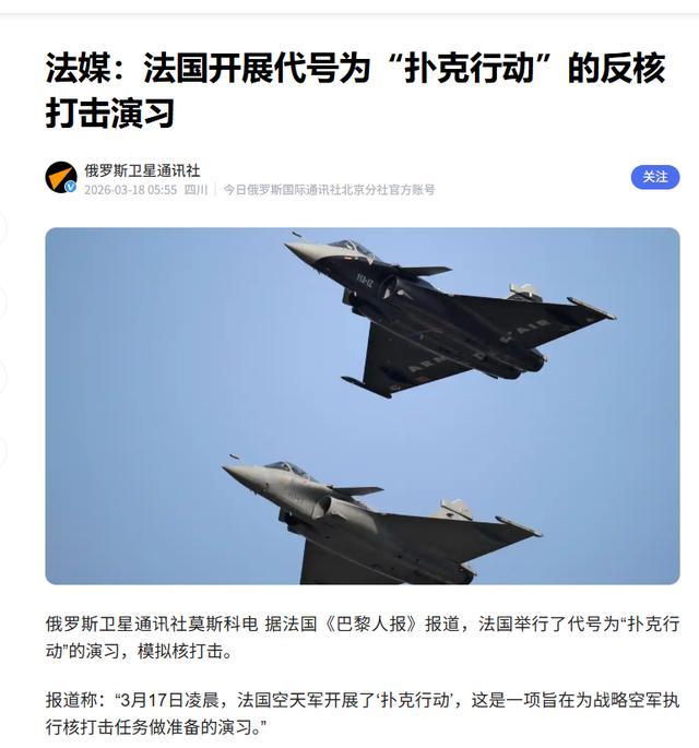 2026年3月,法国国防部一声令下,径直启动了代号“扑克牌”的大限度核打击演习。