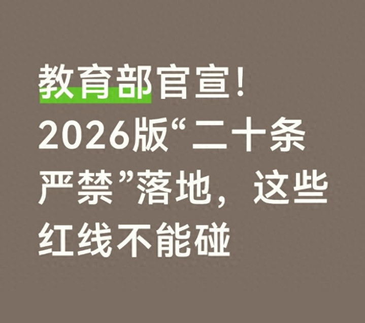 3月27日,教悔部厚爱印发《对于开展基础教悔范例不断沉稳年行径的奉告》,同步发布2026版基础教悔范例不断负面清单。这次行径聚焦教悔平允、减负、师德等五大规模,划出20条刚性红线,明确“发现全部、查处全部”的监管基调。